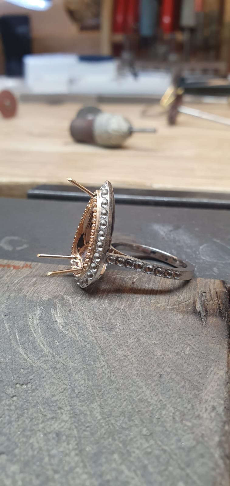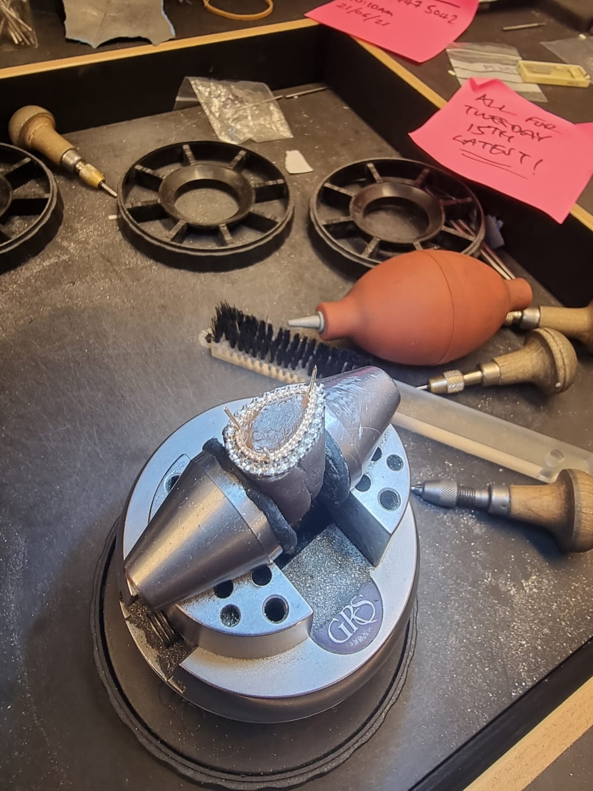 Edging closer to the finished article, all that was left was to polish and clean the piece to ensure that it would delight and dazzle its new owner. Using an ultrasound cleaner which sends pulses of vibrations through a special solution the ring in all its glory was then ready for our client.